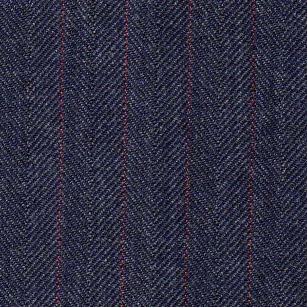 Medium Blue Herringbone with Red Stripe All Wool 350gms